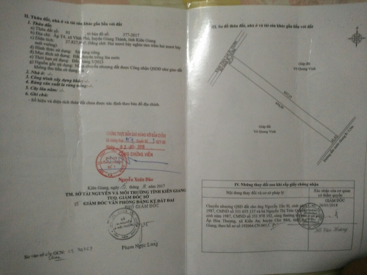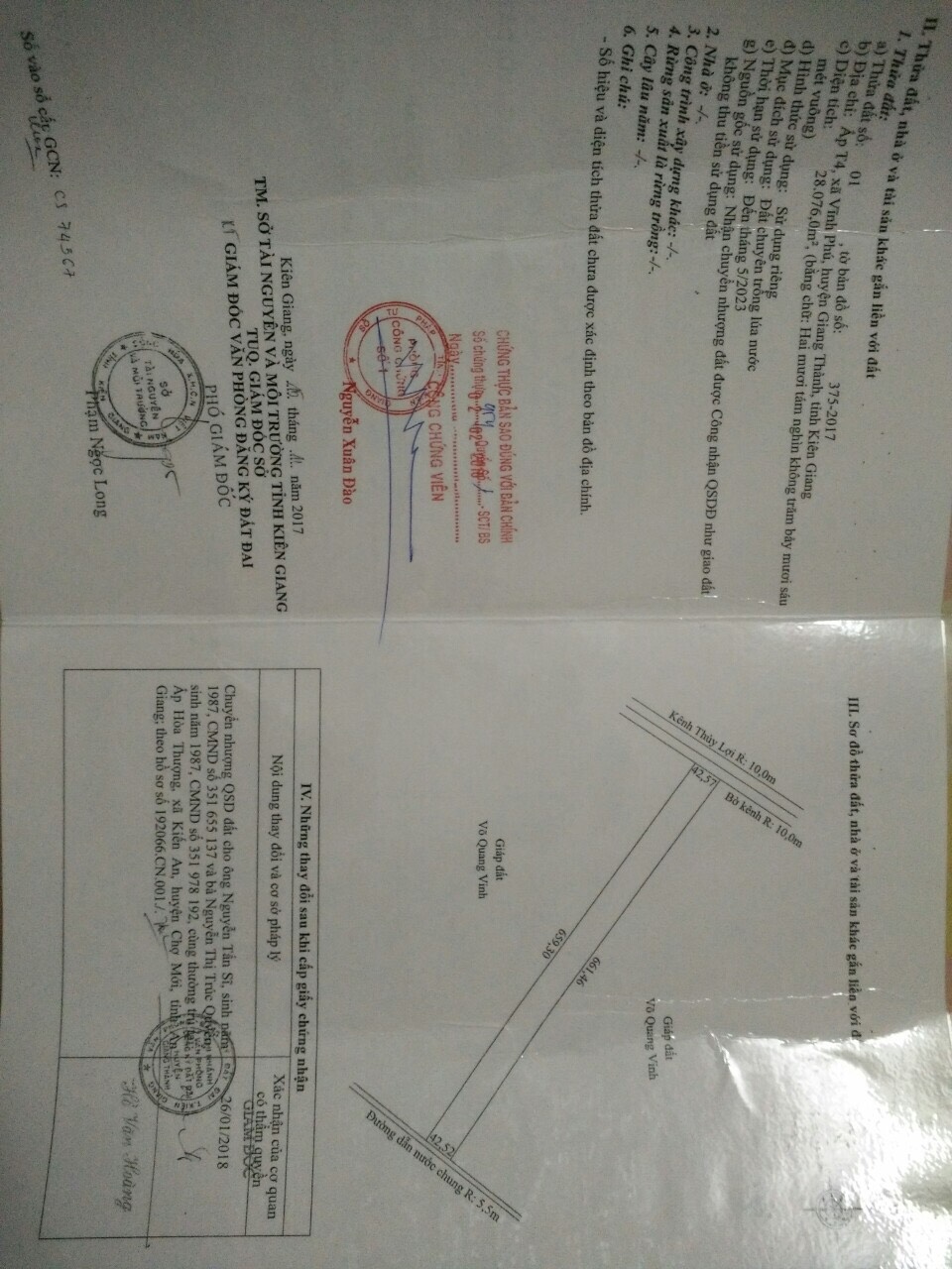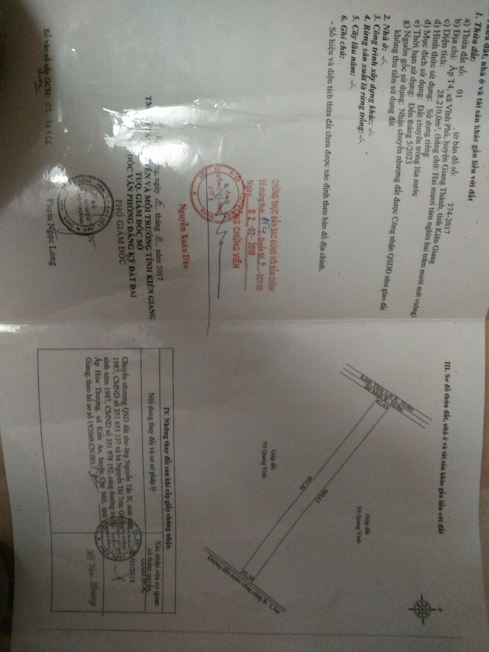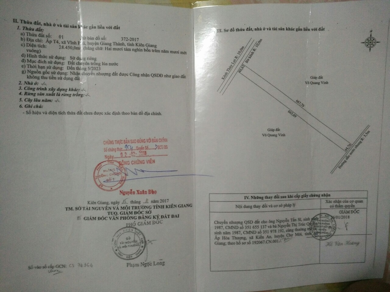 Địa chỉ trụ sở: Thửa đất số 01, tờ bản đồ số 371-2017, tổ 8, ấp T4, Xã Vĩnh Phú, Huyện Giang Thành, Tỉnh Kiên Giang
