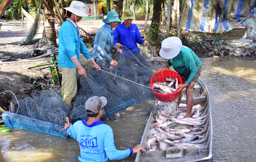 Bà con nông dân rất phấn khởi khi vào vụ thu hoạch, thương lái đến tận ruộng thu mua cá, với giá cá chép 13.000 – 16.000 đồng một kg; cá mè hoa giá khoảng 10.000 đồng mỗi kg….